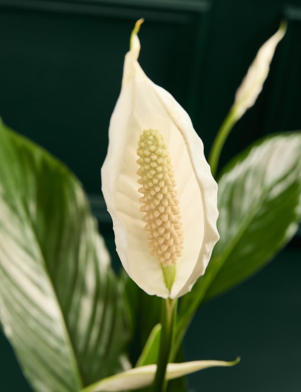 Peace lily Spathiphyllum wallisii is a popular low maintenance house plant with glossy green leaves and white flowers called spathes. Spathiphyllum grows best in bright indirect light but can tolerate lower light conditions. While Peace Lilies were found to clean the air by NASA youll need around 15-18 large plants for a space of 160 metres.