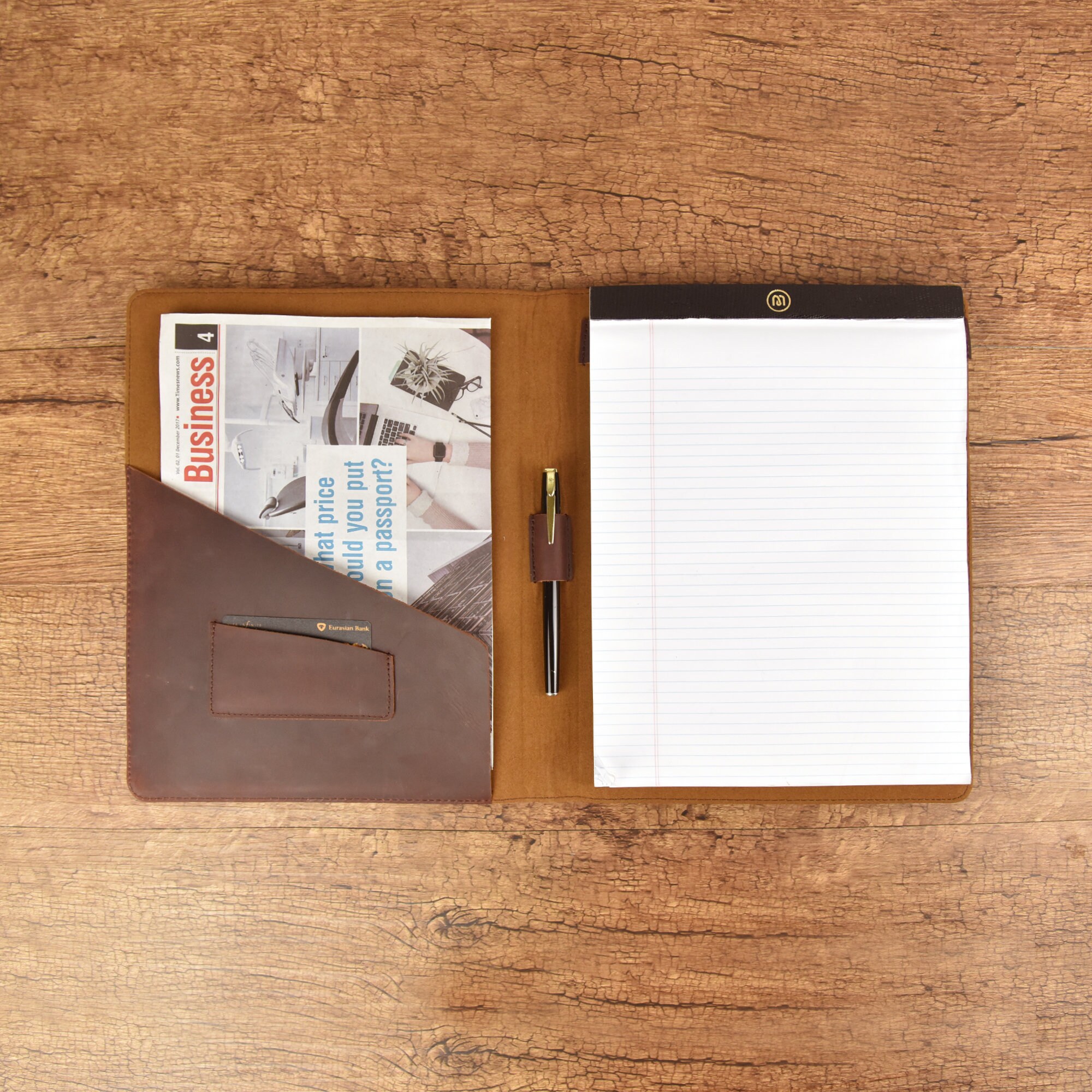 Leather Portfolio Folder Organizer For 5 X 8 Inch Notepad Writing Pad Dmleather